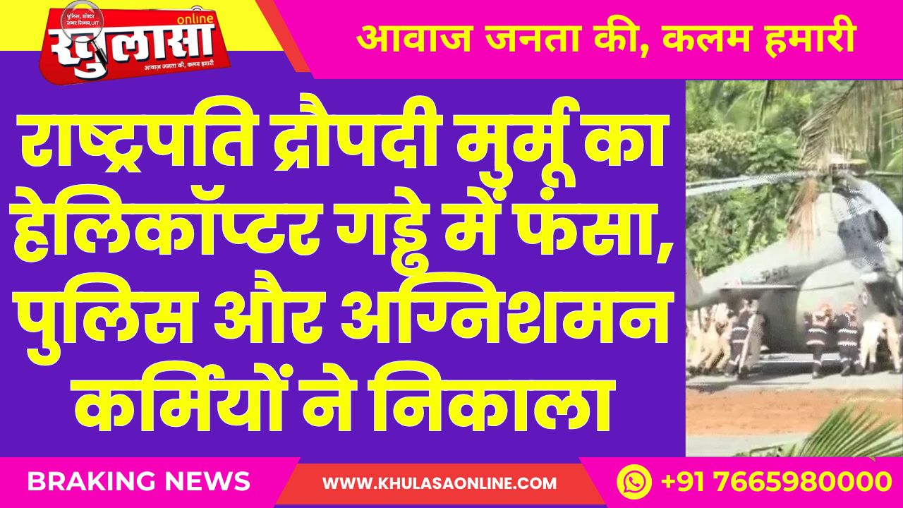 राष्ट्रपति द्रौपदी मुर्मू का हेलिकॉप्टर गड्ढे में फंसा, पुलिस और अग्निशमन कर्मियों ने निकाला