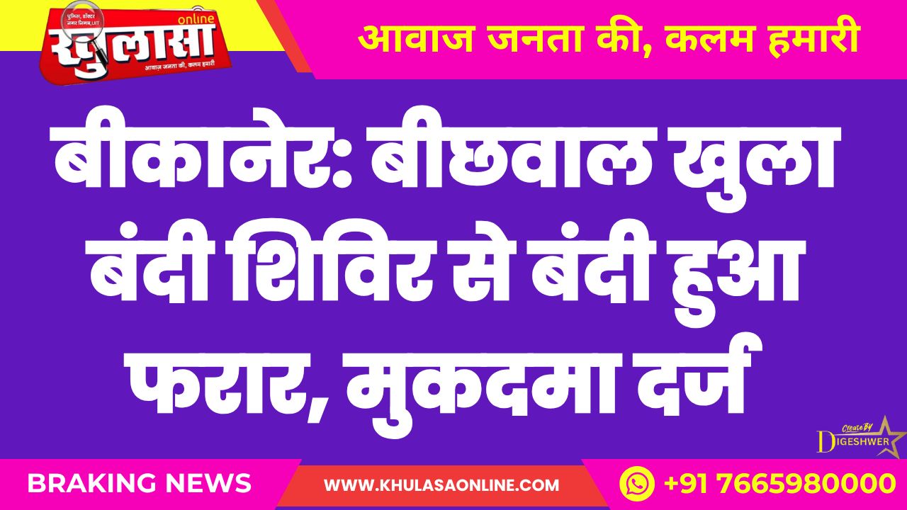 बीकानेर: बीछवाल खुला बंदी शिविर से बंदी हुआ फरार, मुकदमा दर्ज, पढ़े खबर