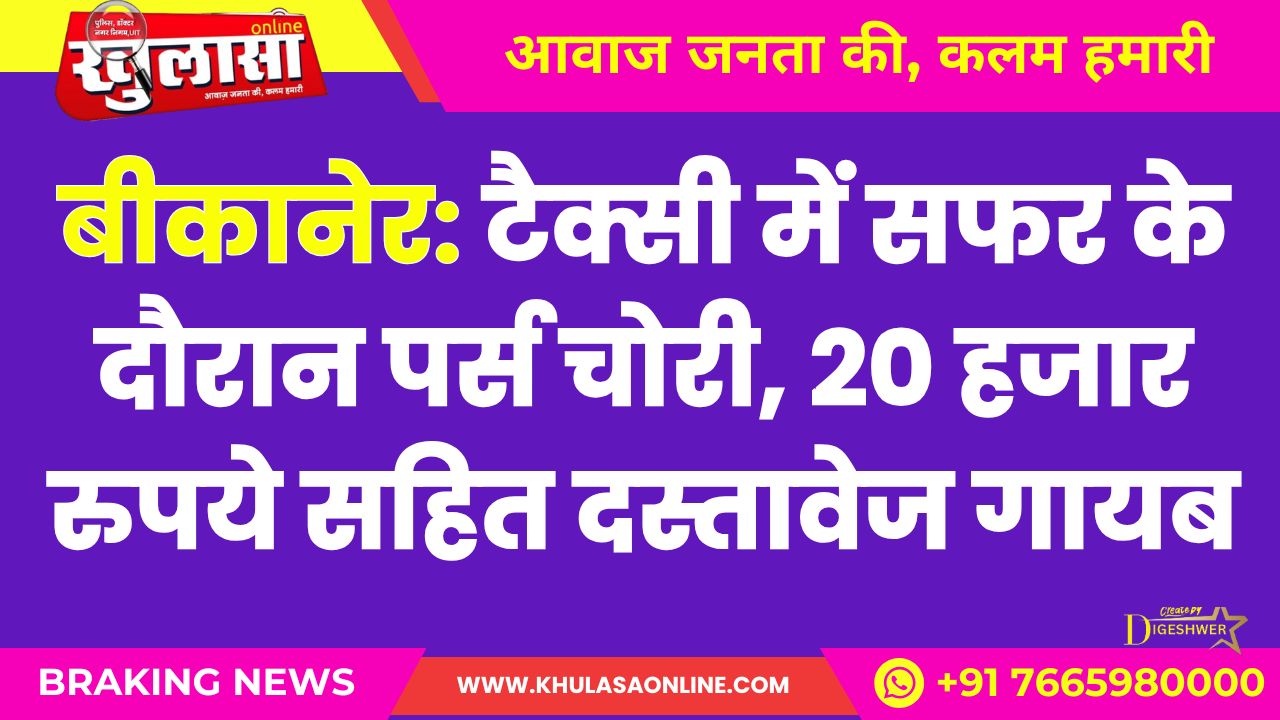 बीकानेर: टैक्सी में सफर के दौरान पर्स चोरी, 20 हजार रुपये सहित दस्तावेज गायब