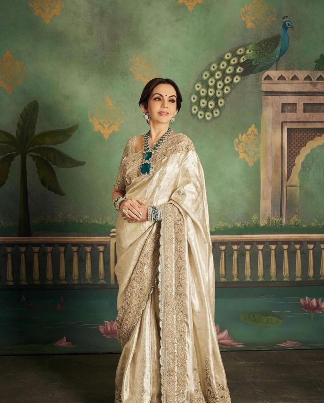 हस्ताक्षर और महाआरती सेरेमनी के पहले नीता अंबानी ने फोटोशूट कराया। उन्होंने इस इवेंट के लिए हैंडलूम कांचीपुरम साड़ी चुनी। इस साड़ी को साउथ इंडिया के लोकल बुनकरों ने बुना है।