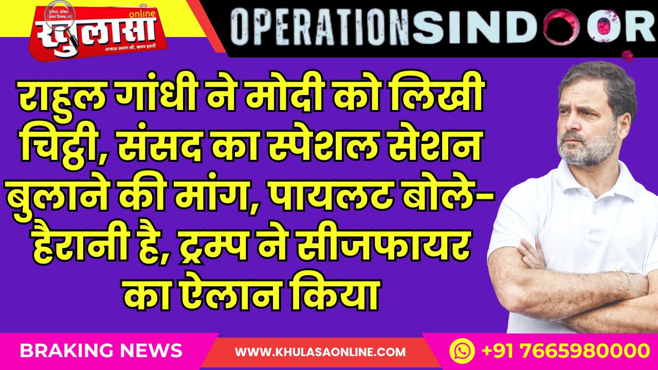 राहुल गांधी ने मोदी को लिखी चिट्ठी, संसद का स्पेशल सेशन बुलाने की मांग, पायलट बोले- हैरानी है, ट्रम्प ने सीजफायर का ऐलान किया