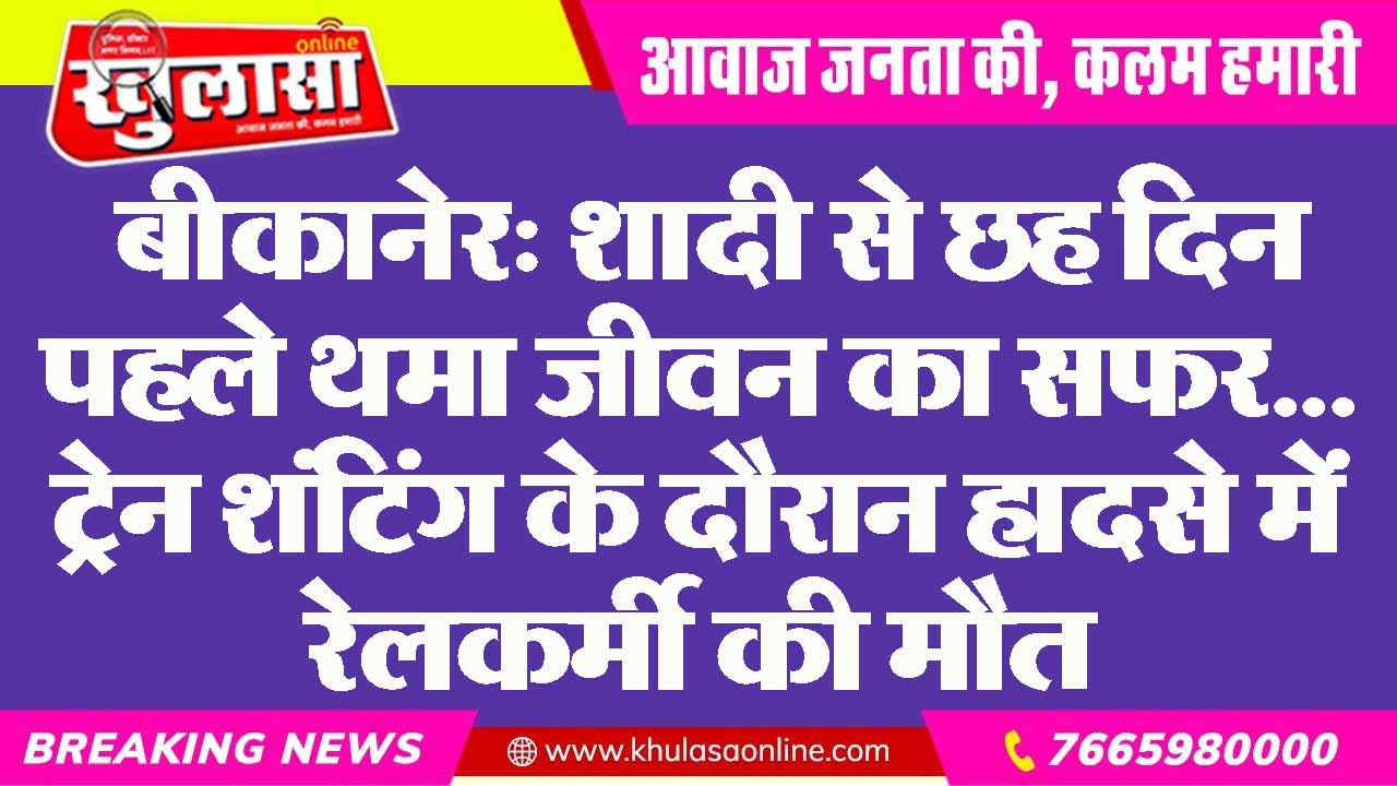 बीकानेर: शादी से छह दिन पहले थमा जीवन का सफर… ट्रेन शंटिंग के दौरान हादसे में रेलकर्मी की मौत
