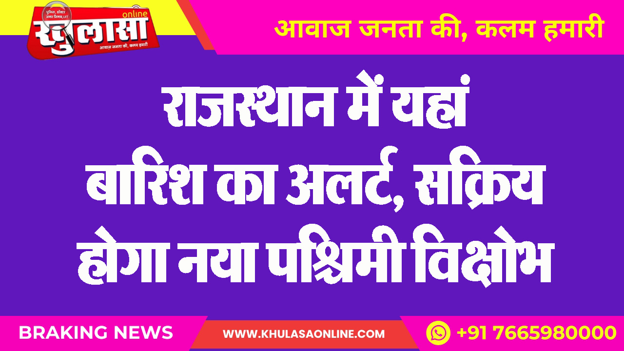 राजस्थान में यहां बारिश का अलर्ट, सक्रिय होगा नया पश्चिमी विक्षोभ