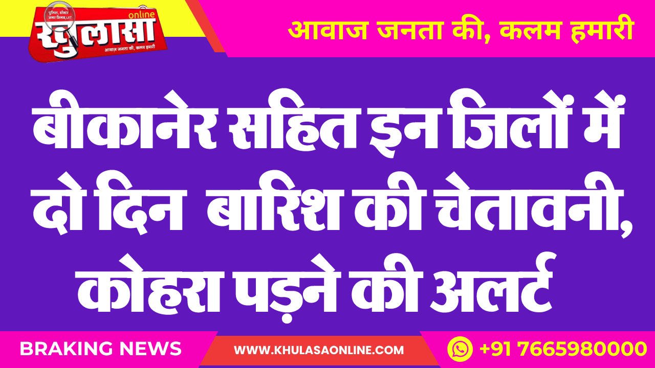 बीकानेर सहित इन जिलों में दो दिन बारिश की चेतावनी, कोहरा पडऩे की अलर्ट