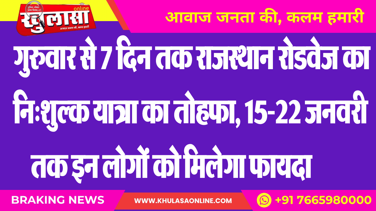 गुरुवार से 7 दिन तक राजस्थान रोडवेज का नि:शुल्क यात्रा का तोहफा, 15-22 जनवरी तक इन लोगों को मिलेगा फायदा