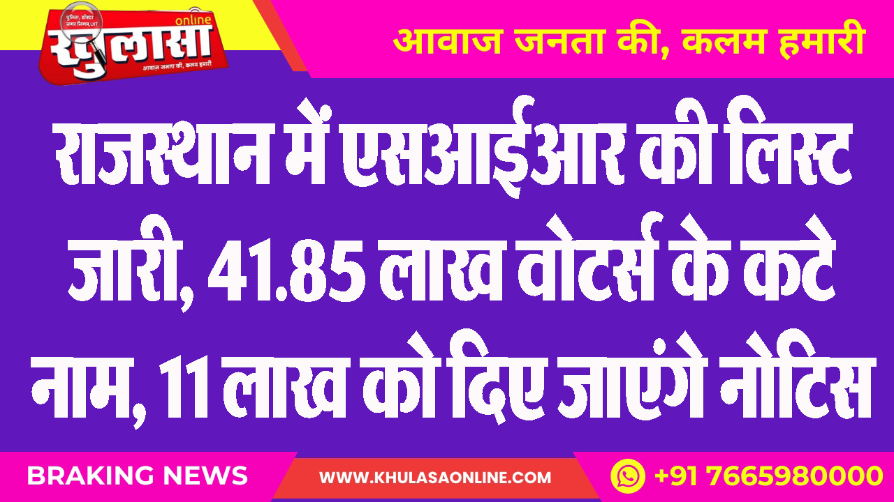 राजस्थान में एसआईआर की लिस्ट जारी, 41.85 लाख वोटर्स के कटे नाम, 11 लाख को दिए जाएंगे नोटिस