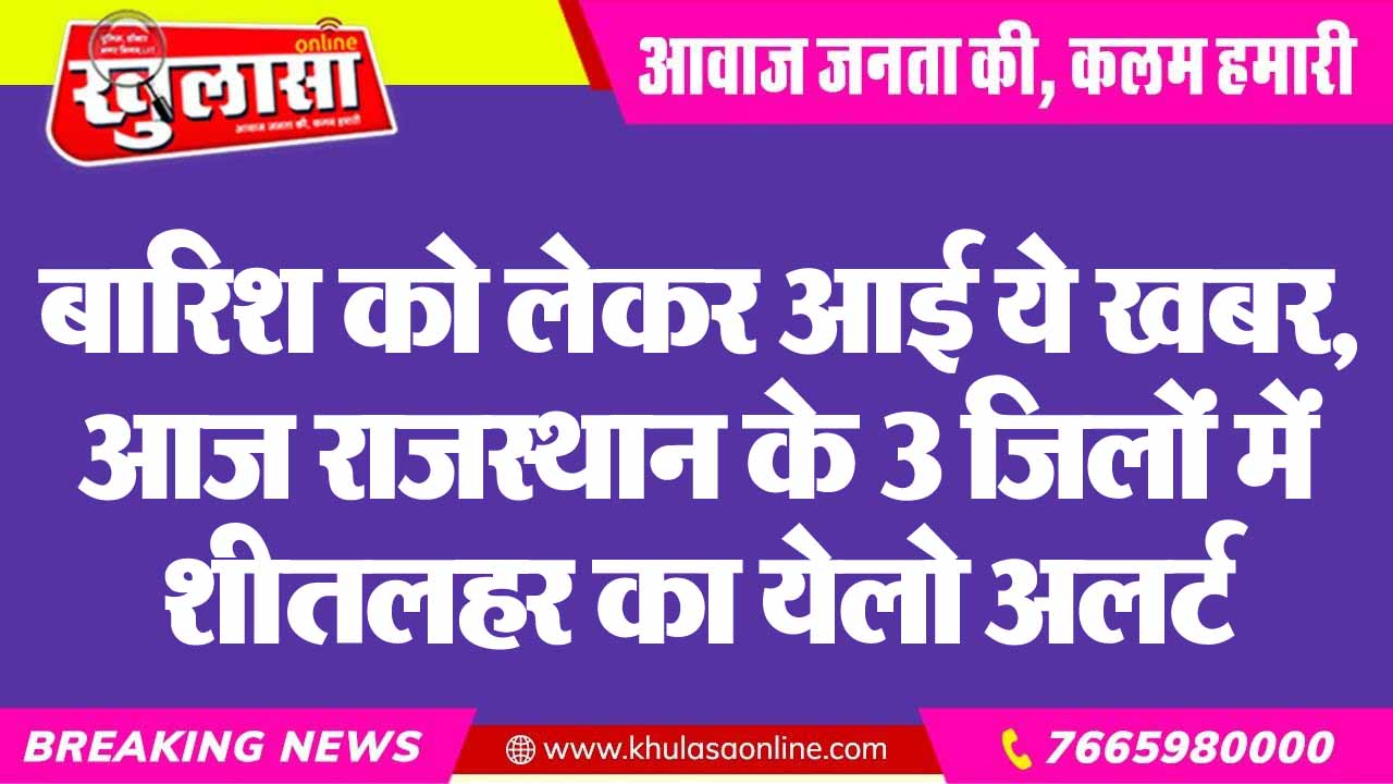 बारिश को लेकर आई ये खबर, आज राजस्थान के 3 जिलों में शीतलहर का येलो अलर्ट