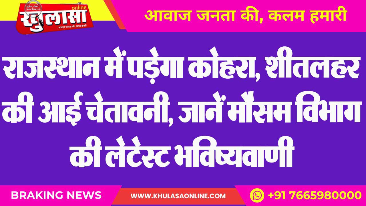 राजस्थान में पड़ेगा कोहरा, शीतलहर की आई चेतावनी, जानें मौसम विभाग की लेटेस्ट भविष्यवाणी