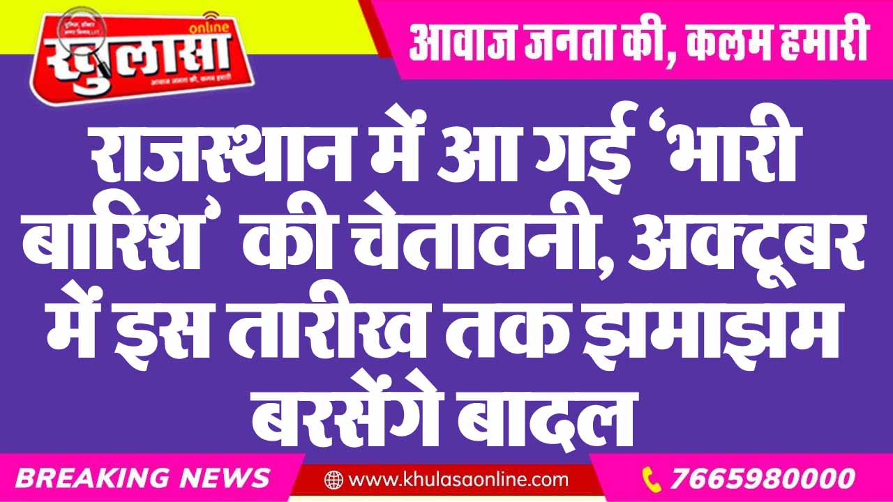 राजस्थान में आ गई ‘भारी बारिश’ की चेतावनी, अक्टूबर में इस तारीख तक झमाझम बरसेंगे बादल