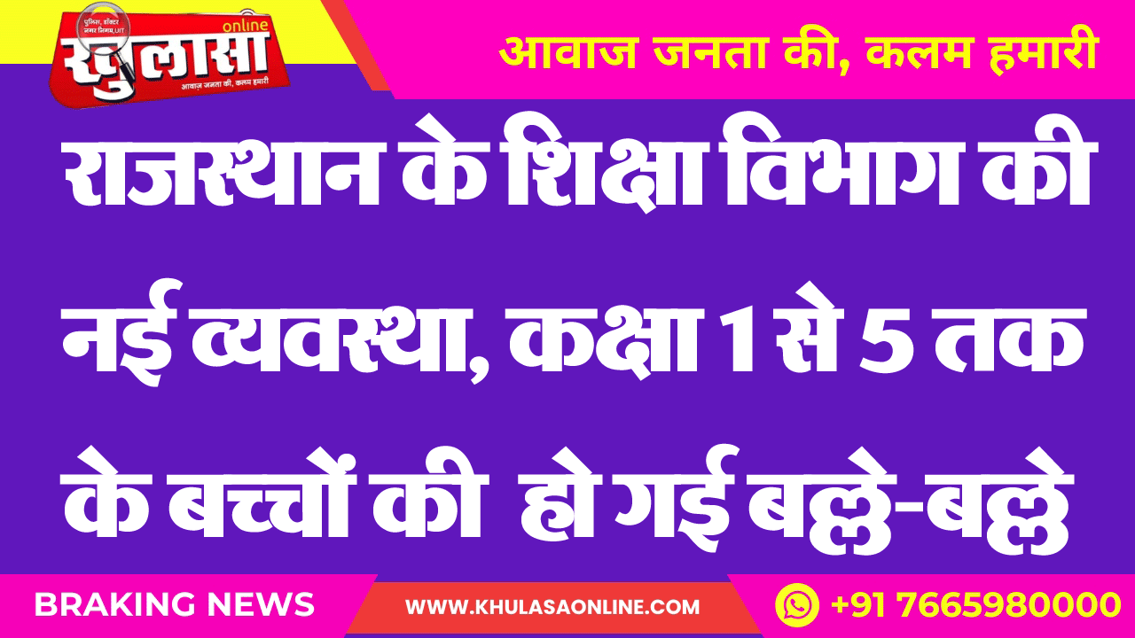 राजस्थान के शिक्षा विभाग की नई व्यवस्था, कक्षा 1 से 5 तक के बच्चों की हो गई बल्ले-बल्ले