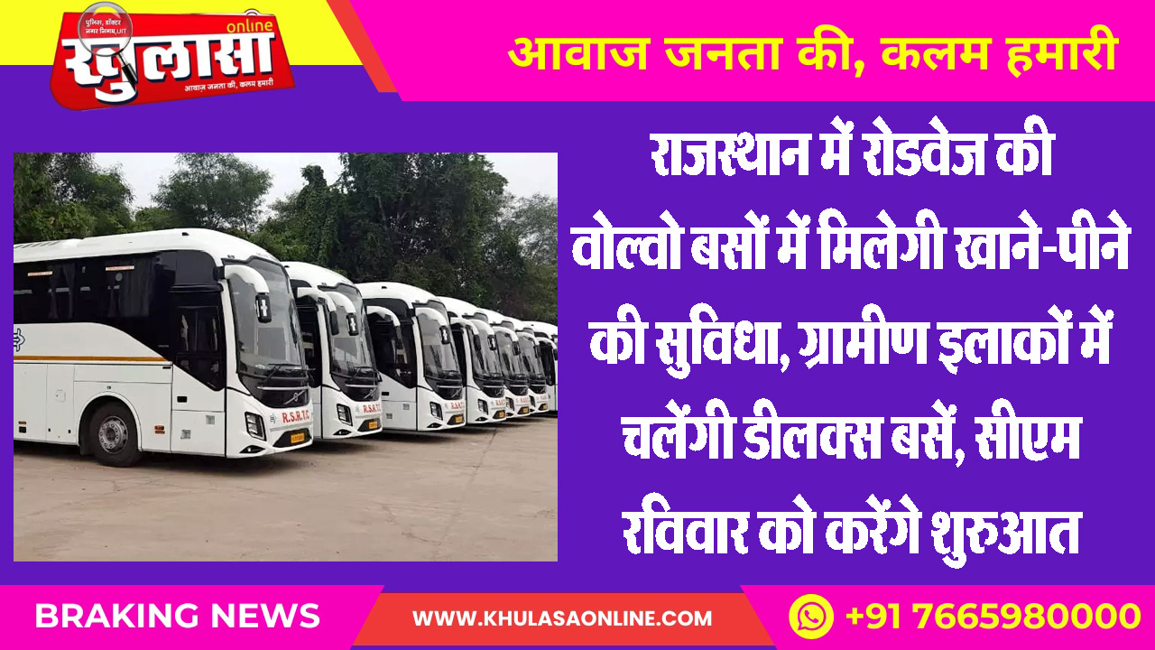 राजस्थान में रोडवेज की वोल्वो बसों में मिलेगी खाने-पीने की सुविधा, ग्रामीण इलाकों में चलेंगी डीलक्स बसें, सीएम रविवार को करेंगे शुरुआत
