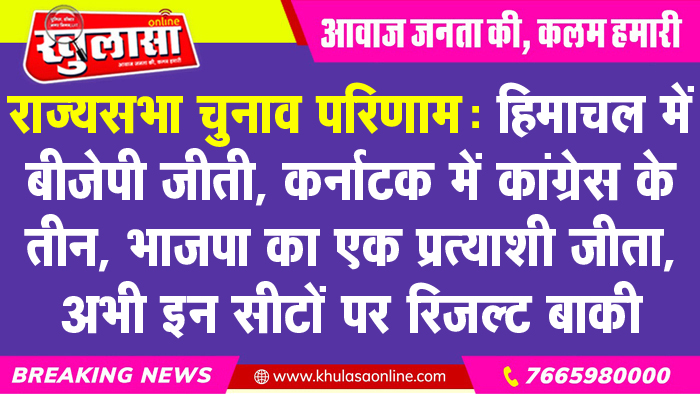 राज्यसभा चुनाव परिणाम : हिमाचल में बीजेपी जीती, कर्नाटक में कांग्रेस के तीन, भाजपा का एक प्रत्याशी जीता, अभी इन सीटों पर रिजल्ट बाकी