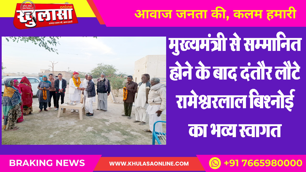 बता दें कि सामाजिक कार्यकर्ता, समाजसेवी,पर्यावरण प्रेमी और जाम्भोजी महाराज के अनन्य भक्त रामेश्वरलाल बिश्नोई ने इस दौरान अनेक जनप्रतिनिधियों एवं प्रशासनिक अधिकारियों से मिलकर दंतौर के ग्रामीणों की कई लम्बित मांगों का निस्तारण करवाने की बात कही। इस पर उन्हें शीघ्र समाधान का आश्वासन भी दिया गया है।