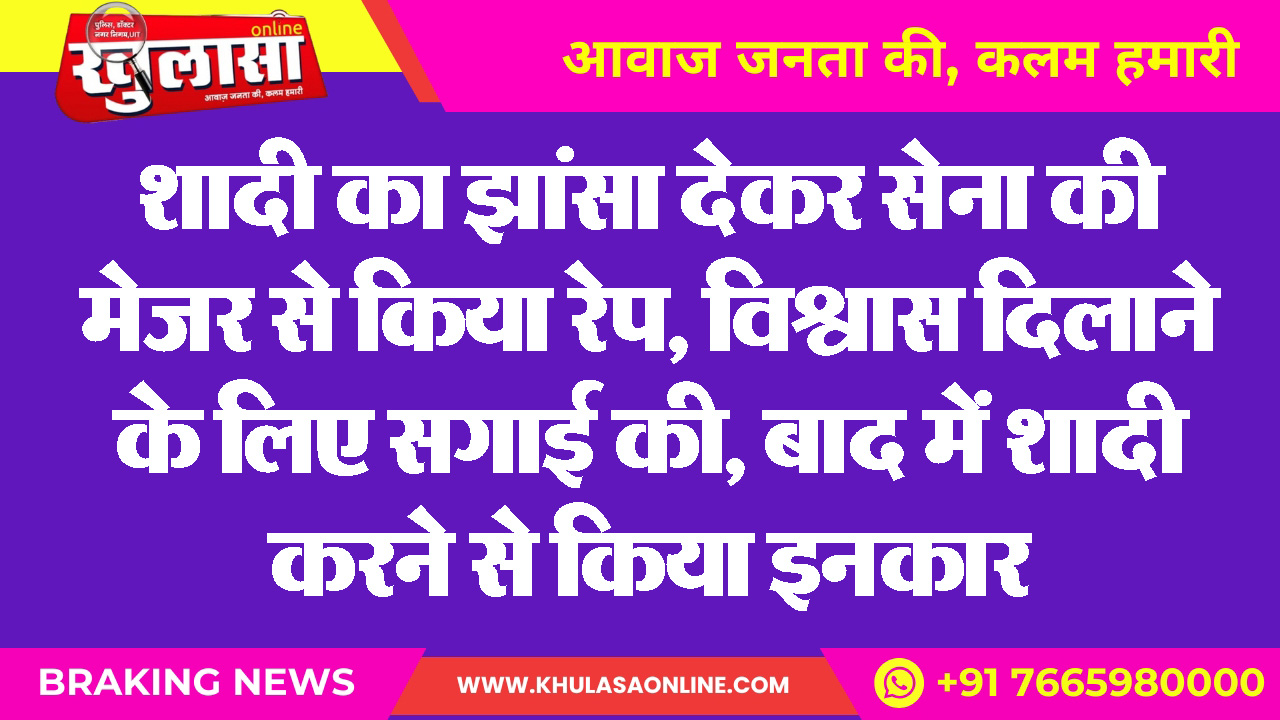 शादी का झांसा देकर सेना की मेजर से किया रेप, विश्वास दिलाने के लिए सगाई की, बाद में शादी करने से किया इनकार