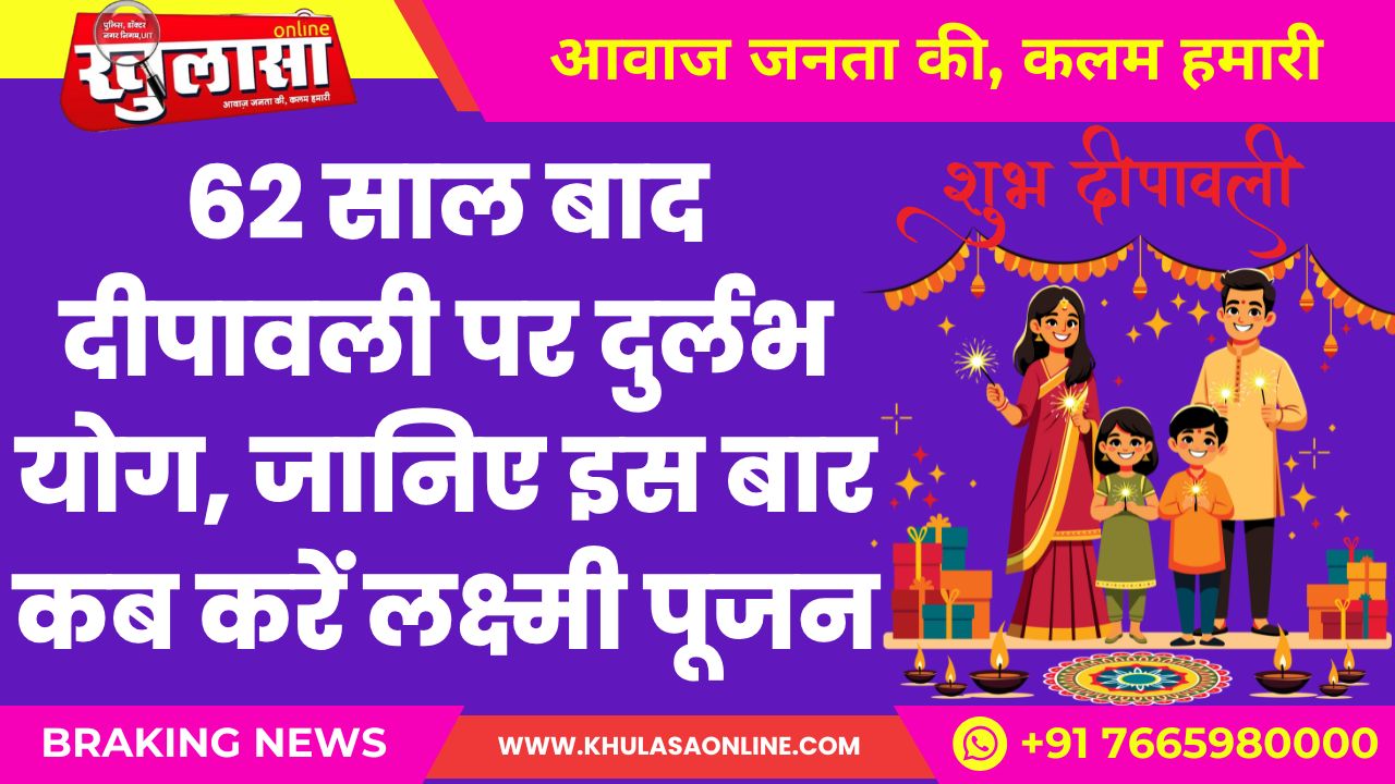 खुलासा न्यूज़। इस वर्ष दीपावली पर एक दुर्लभ योग बन रहा है, जो 62 साल बाद आया है। सामान्यत: दीपावली कार्तिक मास की अमावस्या को मनाई जाती है, लेकिन पंचांग और सूर्यास्त के समय में सूक्ष्म अंतर के कारण कई बार देश के विभिन्न हिस्सों में यह पर्व दो दिनों तक मनाया जाता है।
