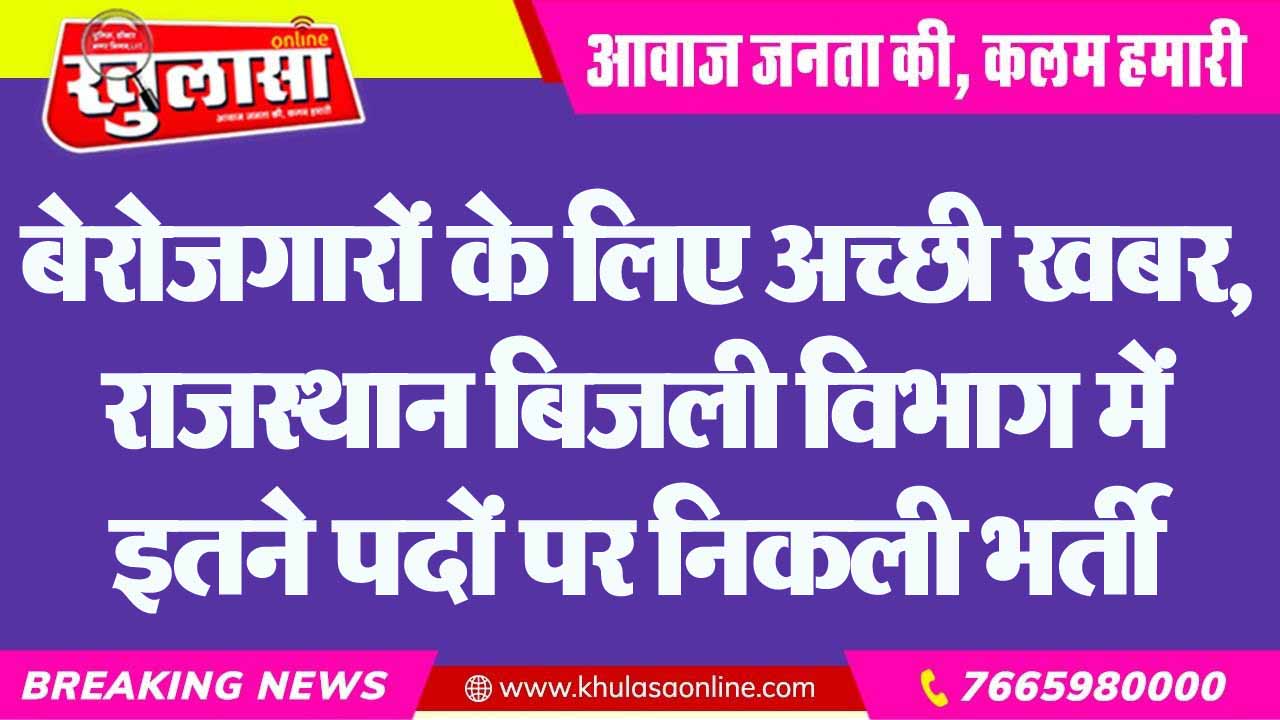 बेरोजगारों के लिए अच्छी खबर, राजस्थान बिजली विभाग में इतने पदों पर निकली भर्ती