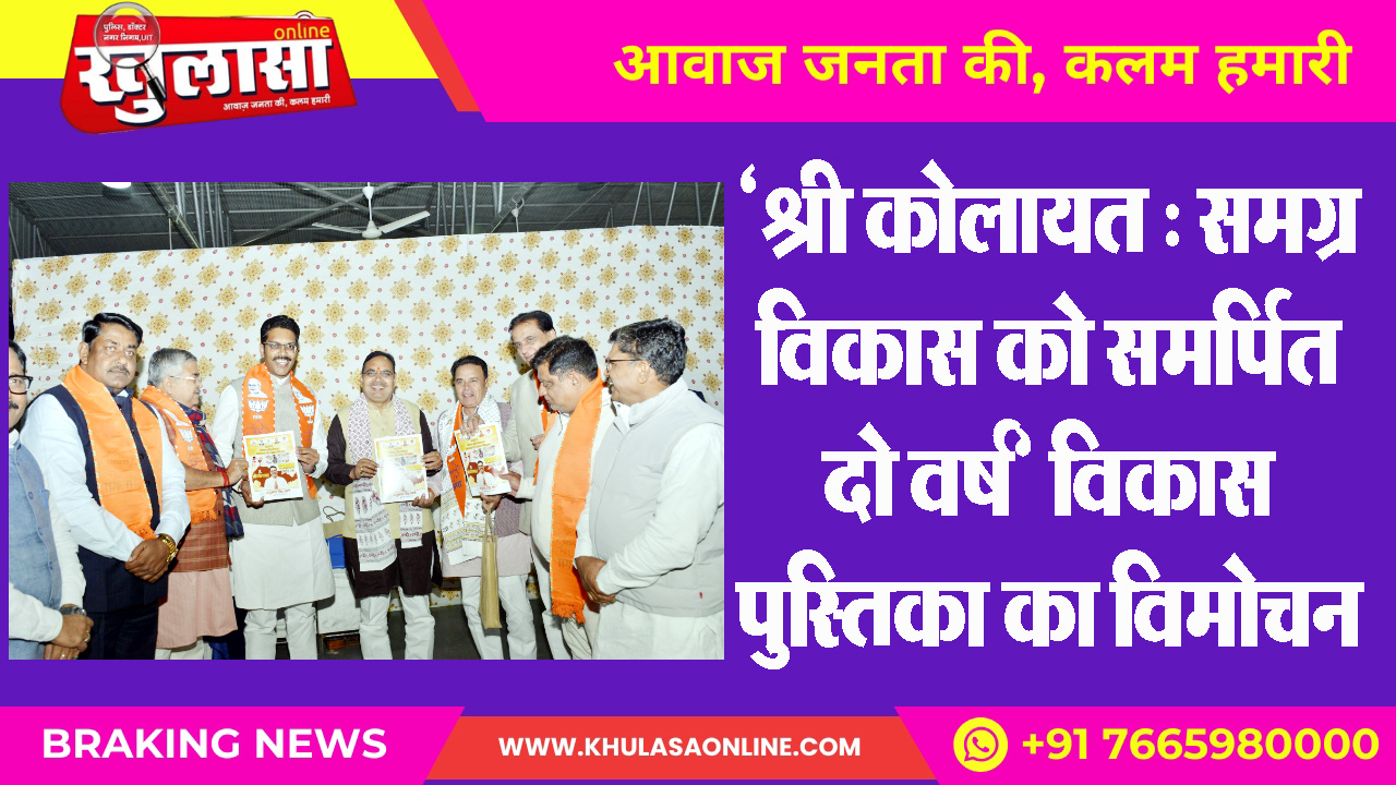 ‘श्री कोलायत : समग्र विकास को समर्पित दो वर्ष’ विकास पुस्तिका का विमोचन