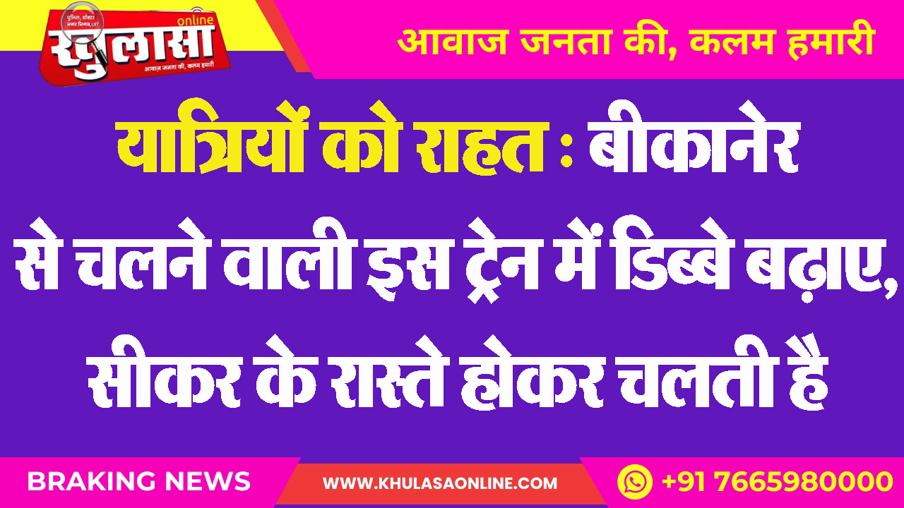 यात्रियों को राहत : बीकानेर से चलने वाली इस ट्रेन में डिब्बे बढ़ाए, सीकर के रास्ते होकर चलती है