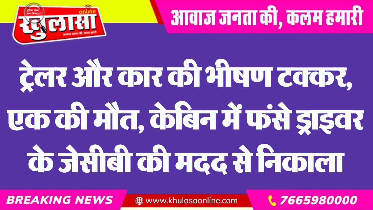 ट्रेलर और कार की भीषण टक्कर, एक की मौत, केबिन में फंसे ड्राइवर के जेसीबी की मदद से निकाला