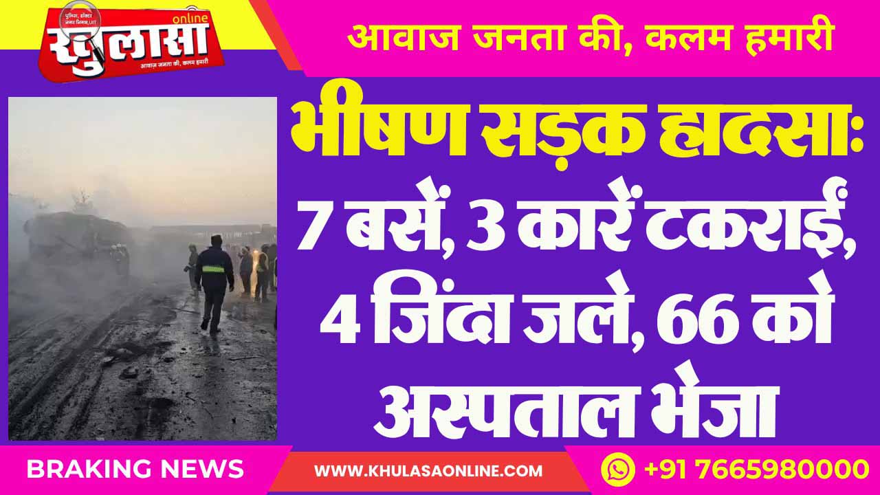 भीषण सड़क हादसा: 7 बसें, 3 कारें टकराईं, 4 जिंदा जले, 66 को अस्पताल भेजा