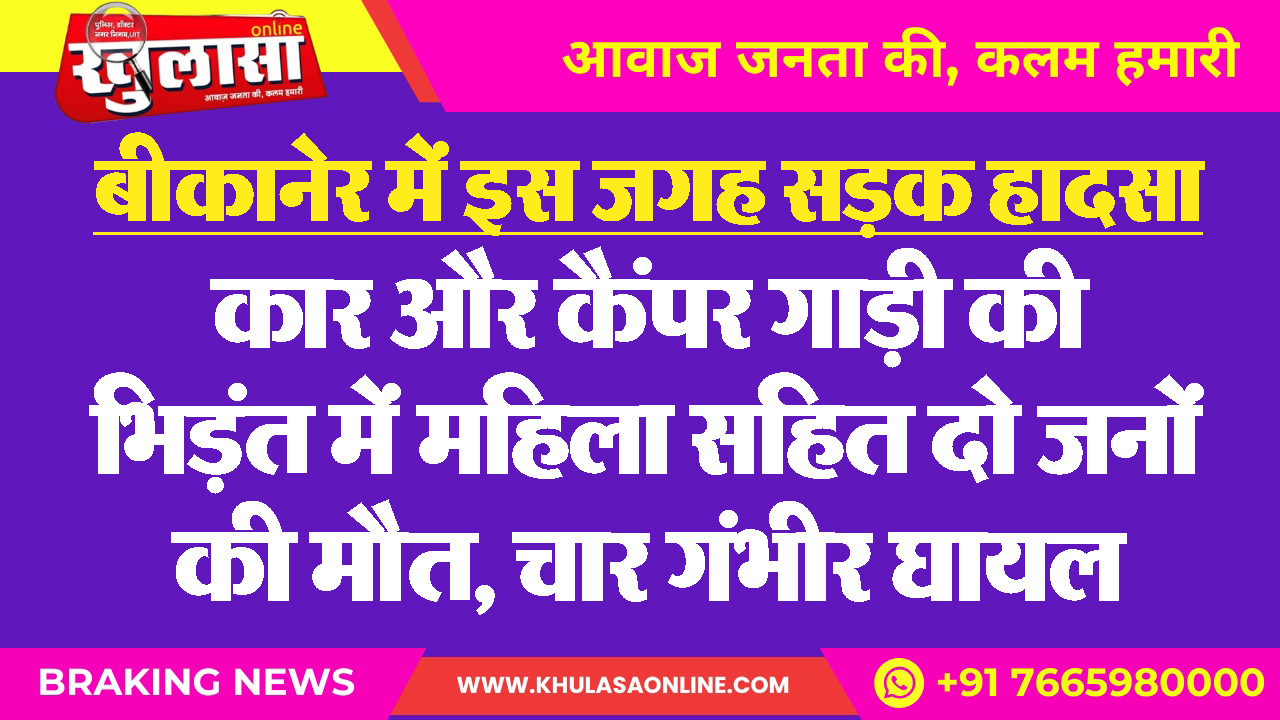बीकानेर में इस जगह सडक़ हादसा : कार और कैंपर गाड़ी की भिड़ंत में महिला सहित दो जनों की मौत, चार गंभीर घायल