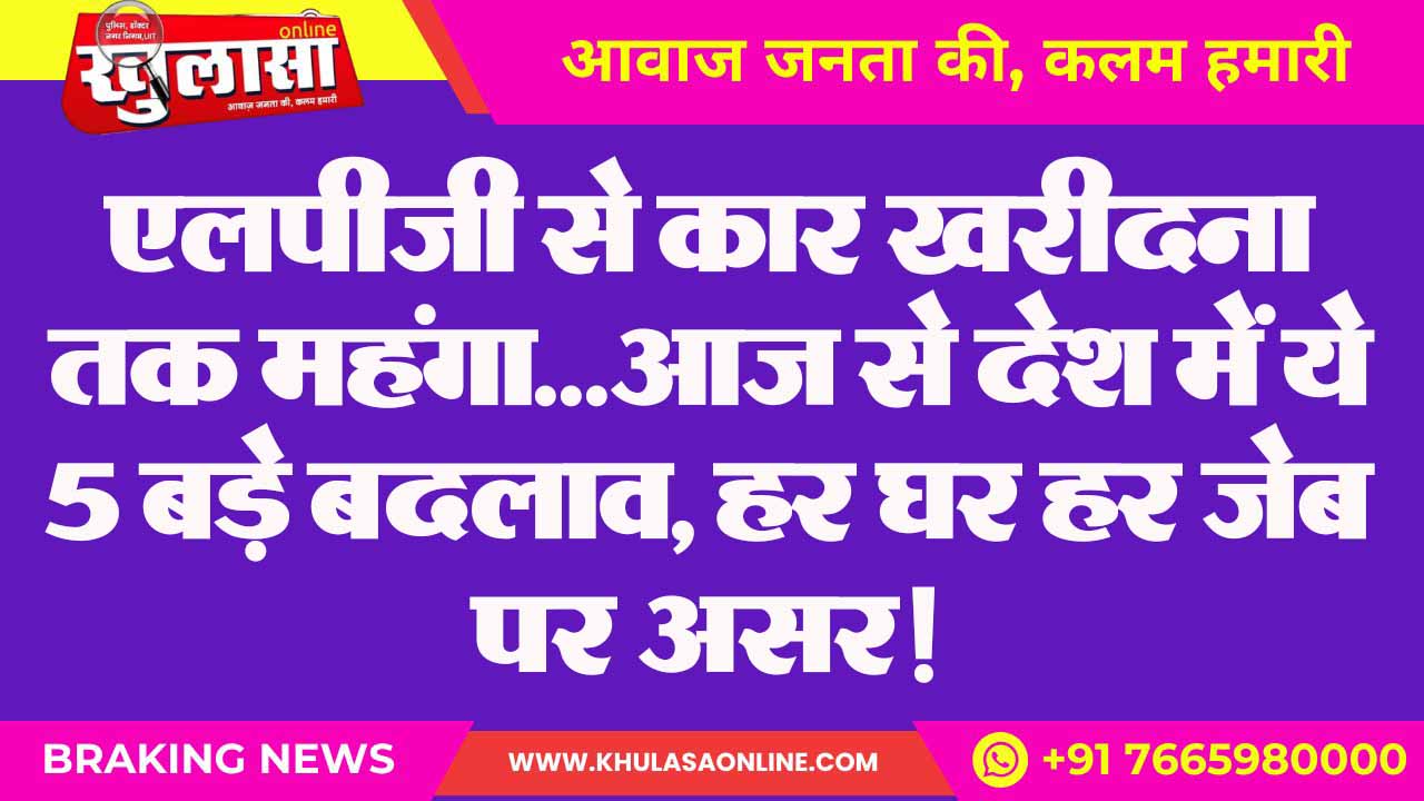 एलपीजी से कार खरीदना तक महंगा… आज से देश में ये 5 बड़े बदलाव, हर घर हर जेब पर असर!