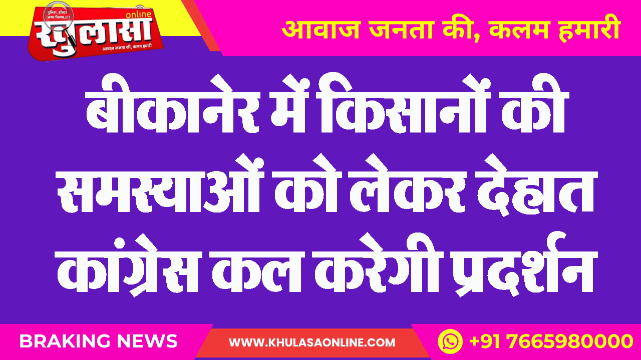 बीकानेर में किसानों की समस्याओं को लेकर देहात कांग्रेस कल करेगी प्रदर्शन