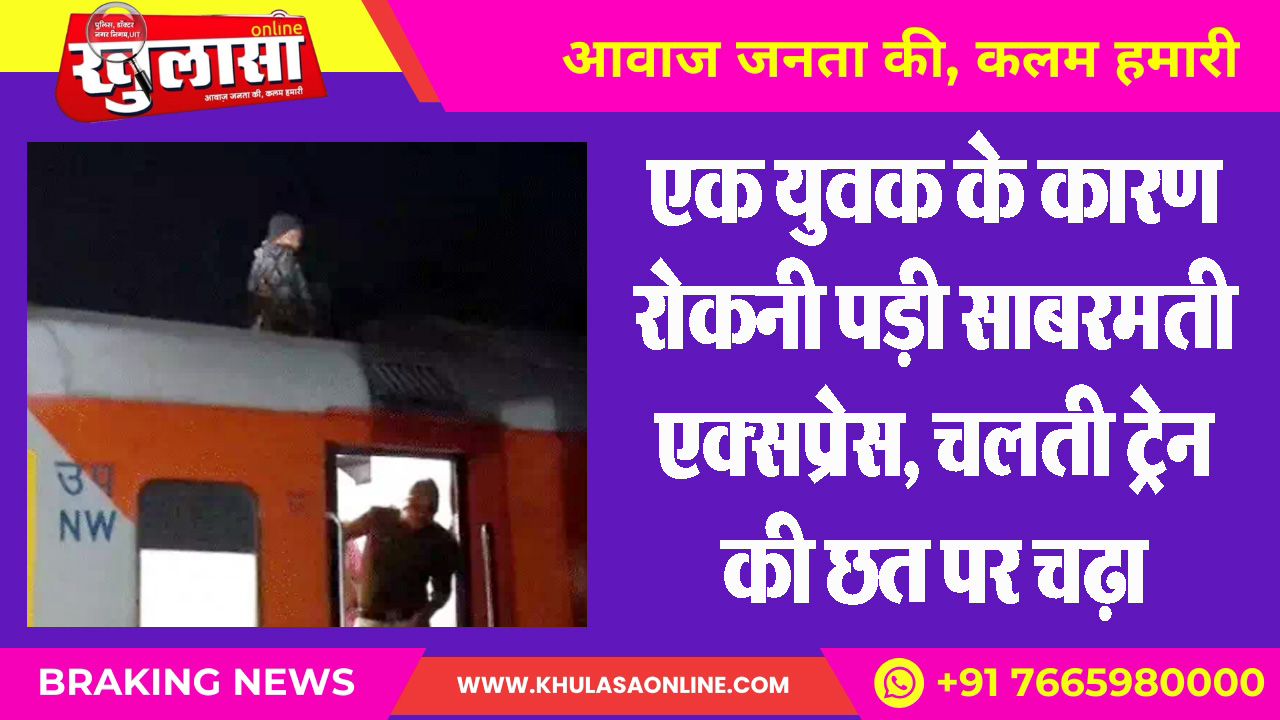 एक युवक के कारण रोकनी पड़ी साबरमती एक्सप्रेस, चलती ट्रेन की छत पर चढ़ा