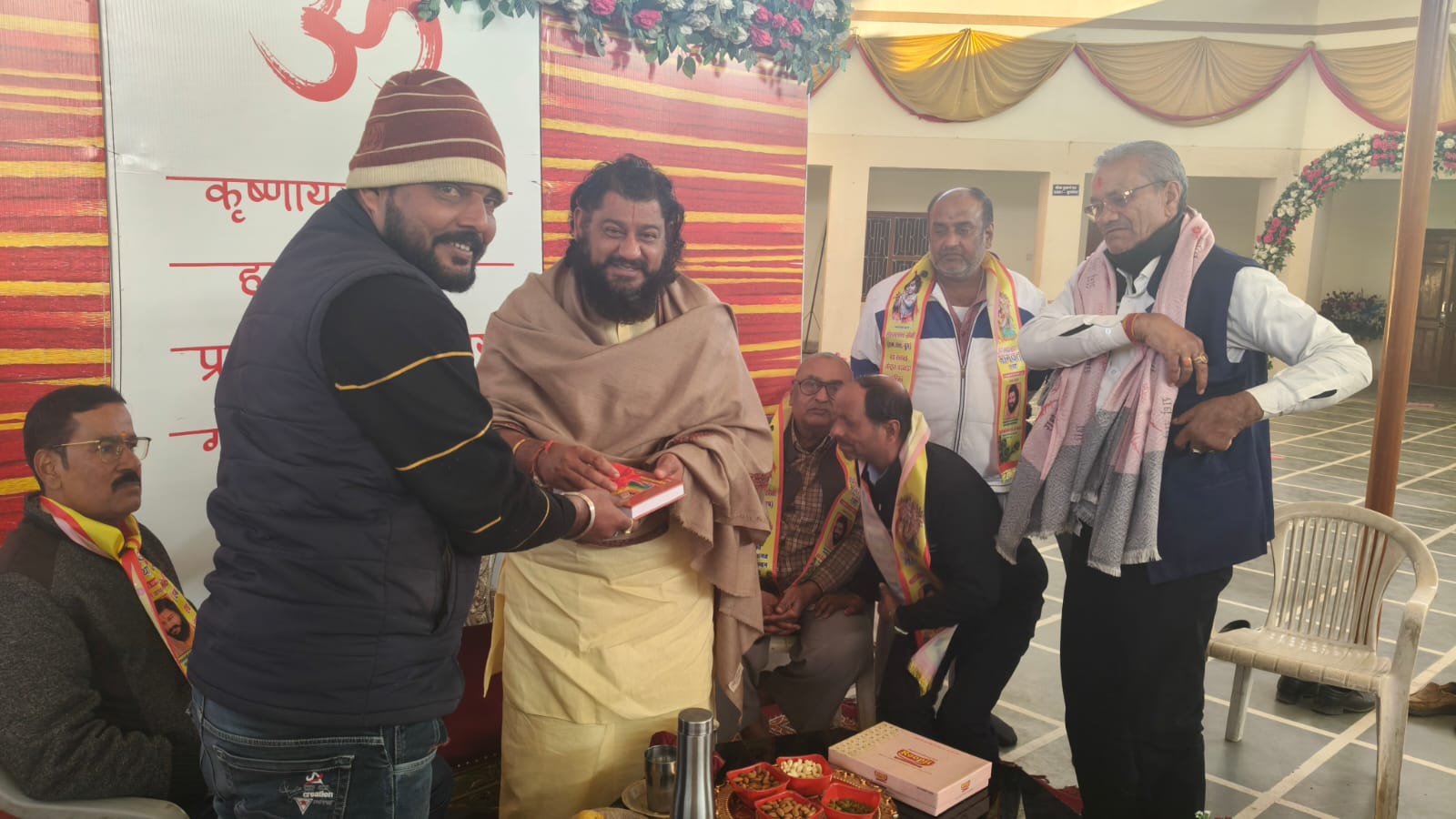 मेडिकल कालेज के प्रिंसिपल डॉ सुरेंद्र वर्मा और महामंडलेश्वर बजरंग दास महाराज को दिया निमंत्रण* बीकानेर। सनातन धर्म रक्षा समिति के बैनर तले 22 से 28 फरवरी तक साध्वी ऋतुंभरा के मुखारविंद से बीकानेर में होने वाली श्रीमद्भागवत कथा के लिए पीले चावल का कलश भेंटकर लोगों को निमंत्रण दिया जाएगा। श्रीमद् भागवत कथा के साथ ही 51 कुंडीय विश्व शांति महायज्ञ भी होगा। सनातन धर्म रक्षा समिति बीकानेर के संस्थापक सुरेन्द्र सिंह राजपुरोहित ने बताया कि बीकानेर की धर्मधरा पर साध्वी ऋतुंभरा पहली बार श्रीमद्भागवत कथा करेंगी। इसे देखते हुए लोगों को निमंत्रण देने के लिए तांबे के 51 हजार कलश मंगवाए गए हैं। अब तक करीब करीब दो हजार लोगों को कलश भेंटकर निमंत्रण दिया जा चुका है। पीले चावल का कलश देने के साथ विशेष लोगों को श्रीमद्भागवत गीता भेंटकर और शाल ओढ़ाकर सम्मान भी किया जा रहा है। इसी कड़ी में मेडिकल कॉलेज के प्रिंसिपल को निमंत्रण दिया गया। *मेडिकल कॉलेज के प्रिंसिपल डॉक्टर सुरेंद्र वर्मा और महामंडलेश्वर बजरंग दास का किया सम्मान* सनातन धर्म रक्षा समिति की ओर से शनिवार को मेडिकल कॉलेज के प्रिंसिपल डॉक्टर सुरेंद्र वर्मा और महामंडलेश्वर बजरंग दास महाराज को पीले चावल का कलश भेंटकर श्रीमद्भागवत कथा के लिए निमंत्रण दिया गया। इस मौके पर दोनों अतिथियों को शाल ओढ़ाकर और श्रीमद्भागवत गीता की पुस्तक भेंटकर सम्मान किया गया। निमंत्रण देने वालों में गोपाल भादाणी, कैलाश छंगाणी, सुरेन्द्रसिंह राजपुरोहित, सीताराम कच्छावा, अनिल सोनी (झूमर सा), एडवोकेट बजरंग छींपा, भुवनेश नागल, पंडित सिद्धार्थ पुरोहित, लक्ष्मीनारायण सुथार आदि शामिल थे।