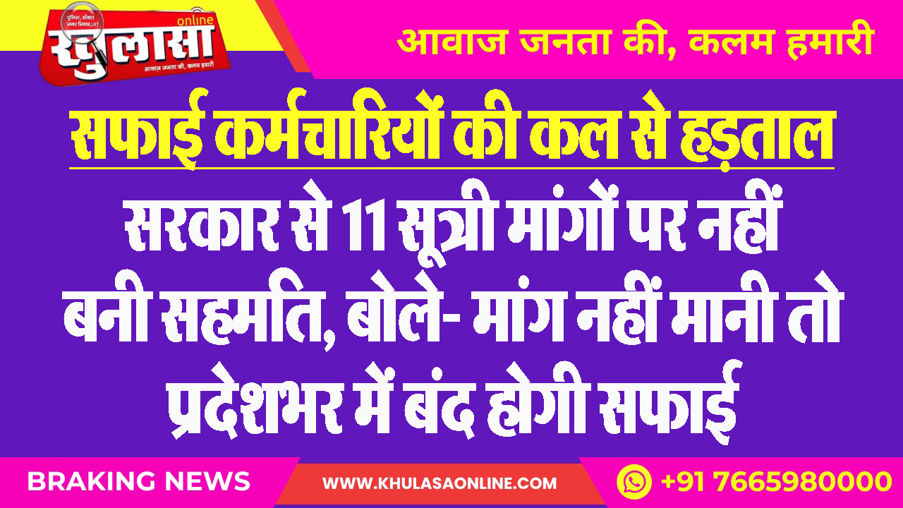 सफाई कर्मचारियों की कल से हड़ताल, सरकार से 11 सूत्री मांगों पर नहीं बनी सहमति, बोले- मांग नहीं मानी तो प्रदेशभर में बंद होगी सफाई