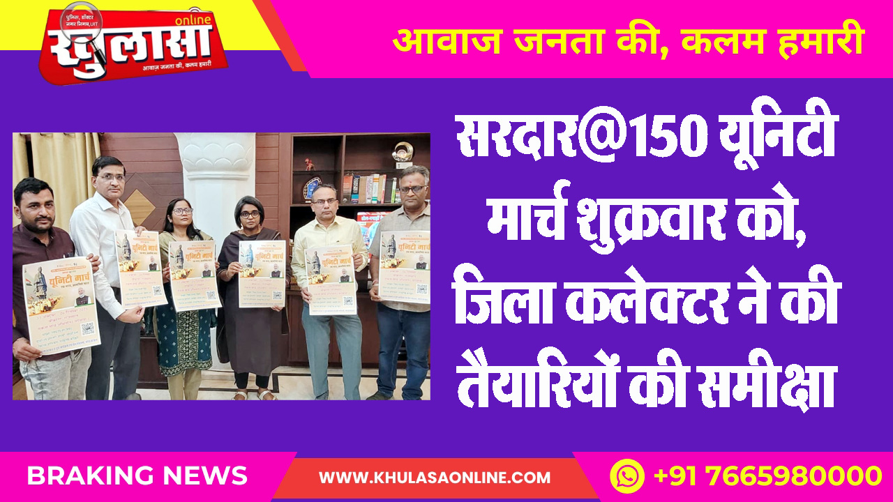 सरदार@150 यूनिटी मार्च शुक्रवार को, जिला कलेक्टर ने की तैयारियों की समीक्षा
