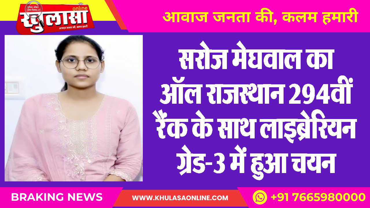 सरोज मेघवाल का ऑल राजस्थान 294वीं रैंक के साथ लाइब्रेरियन ग्रेड-3 में हुआ चयन