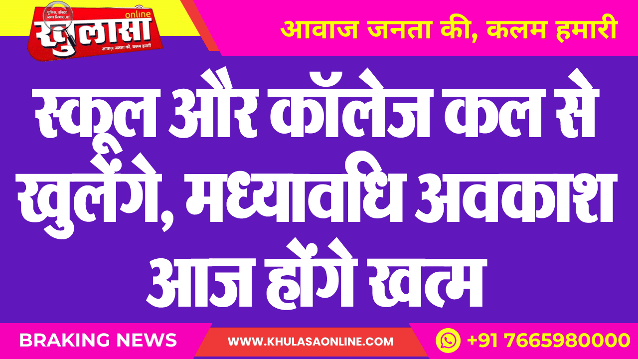 स्कूल और कॉलेज कल से खुलेंगे, मध्यावधि अवकाश आज होंगे खत्म