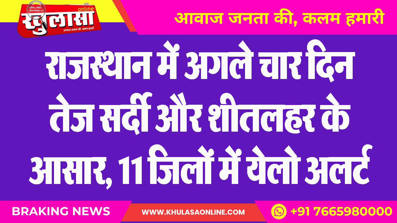 राजस्थान में अगले चार दिन तेज सर्दी और शीतलहर के आसार, 11 जिलों में येलो अलर्ट