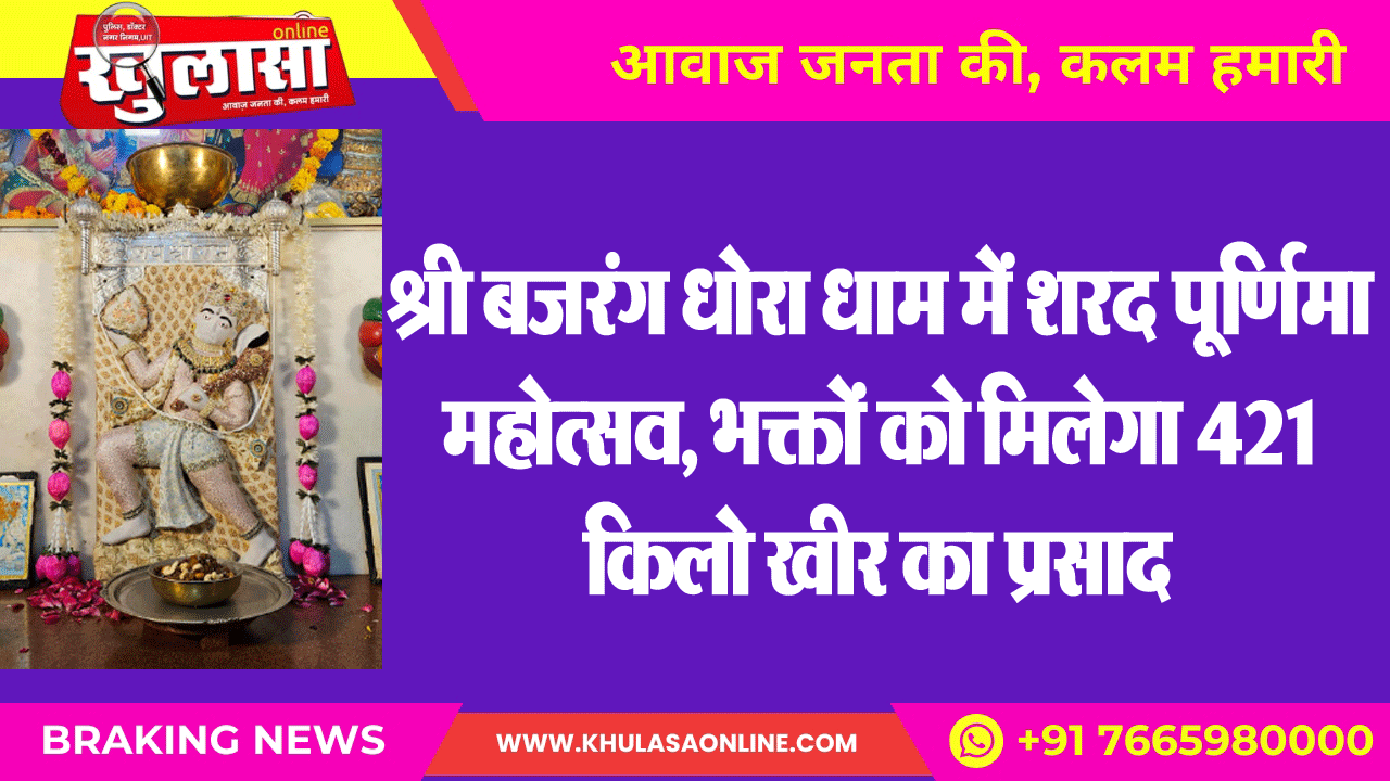 श्री बजरंग धोरा धाम में शरद पूर्णिमा महोत्सव, भक्तों को मिलेगा 421 किलो खीर का प्रसाद