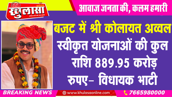 बजट में श्री कोलायत अव्वल, स्वीकृत योजनाओं की कुल राशि 889.95 करोड़ रुपए- विधायक भाटी