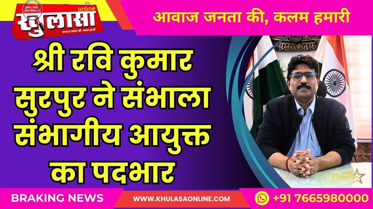 खुलासा न्यूज़, बीकानेर, 11 फरवरी। भारतीय प्रशासनिक सेवा के वरिष्ठ अधिकारी श्री रवि कुमार सुरपुर ने मंगलवार को संभागीय आयुक्त का पदभार संभाला।