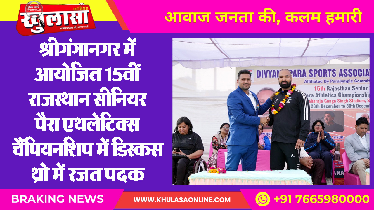 श्रीगंगानगर में आयोजित 15वीं राजस्थान सीनियर पैरा एथलेटिक्स चैंपियनशिप में डिस्कस थ्रो में रजत पदक