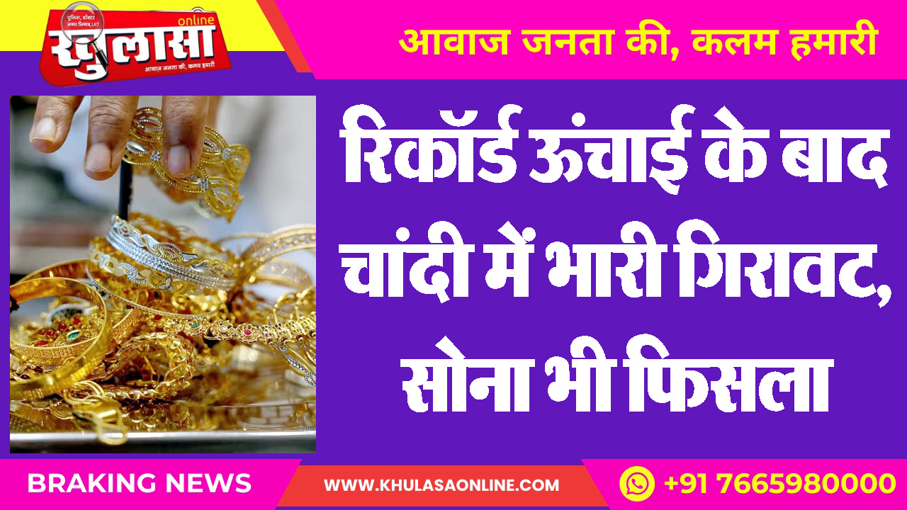 रिकॉर्ड ऊंचाई के बाद चांदी में भारी गिरावट, सोना भी फिसला