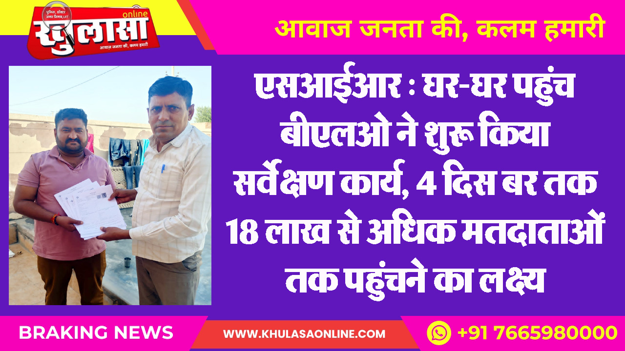 एसआईआरः घर-घर पहुंच बीएलओ ने शुरू किया सर्वेक्षण कार्य, 4 दिसम्बर तक 18 लाख से अधिक मतदाताओं तक पहुंचने का लक्ष्य