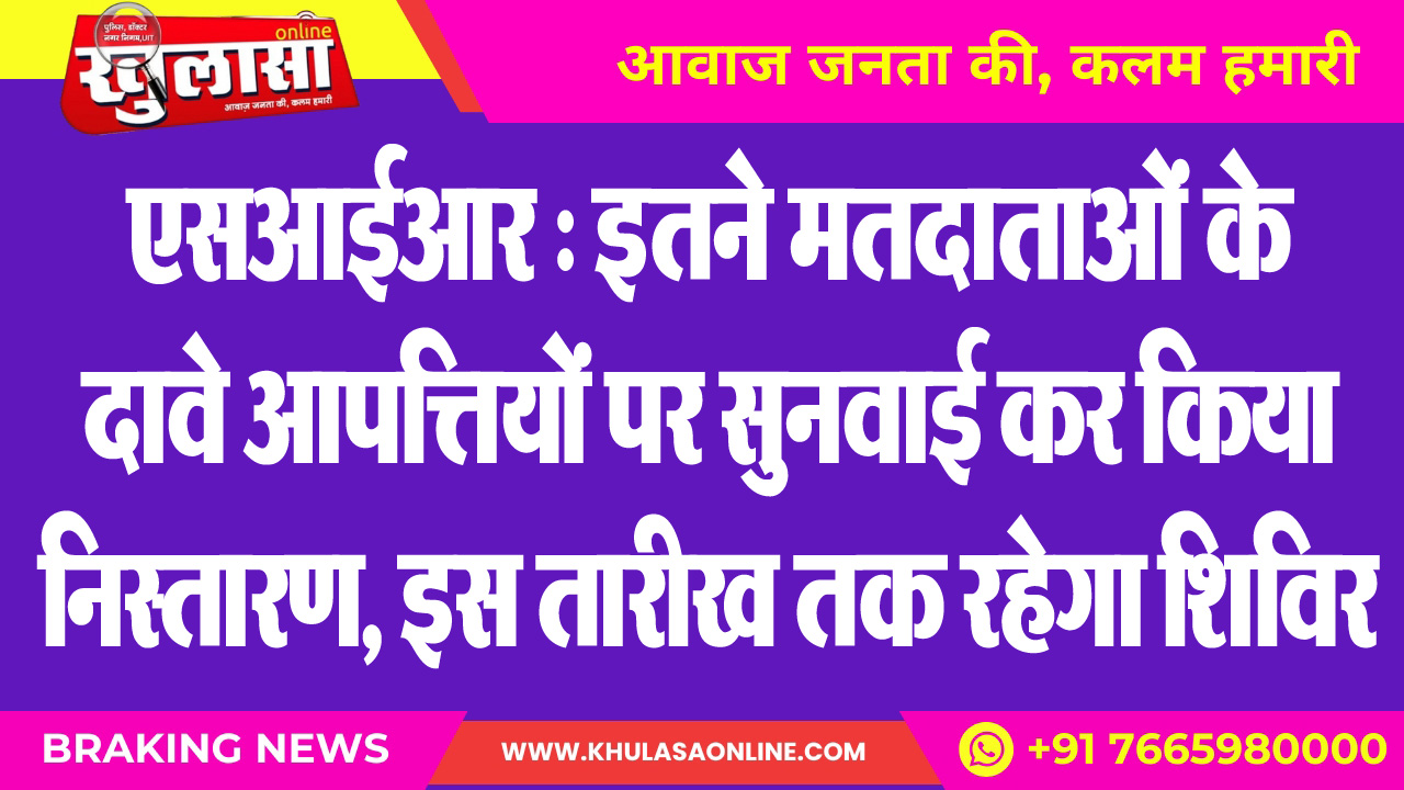 एसआईआर : इतने मतदाताओं के दावे आपत्तियों पर सुनवाई कर किया निस्तारण, इस तारीख तक रहेगा शिविर