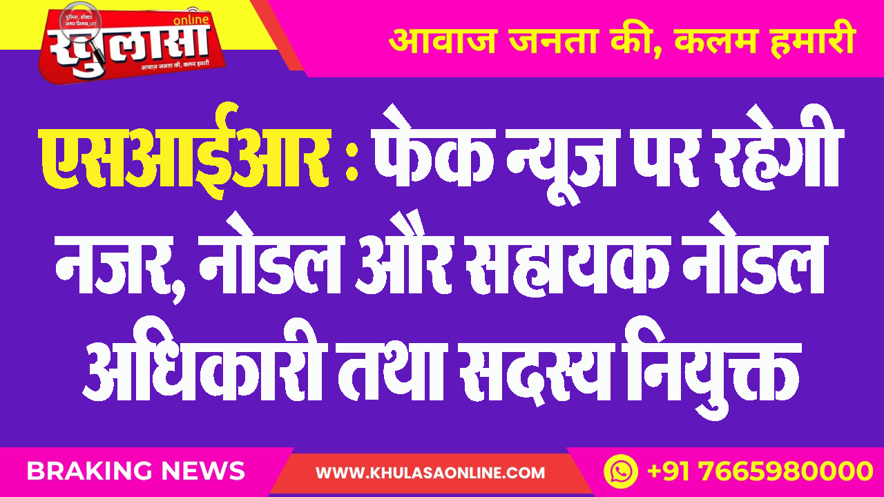 एसआईआर : फेक न्यूज पर रहेगी नजर, नोडल और सहायक नोडल अधिकारी तथा सदस्य नियुक्त