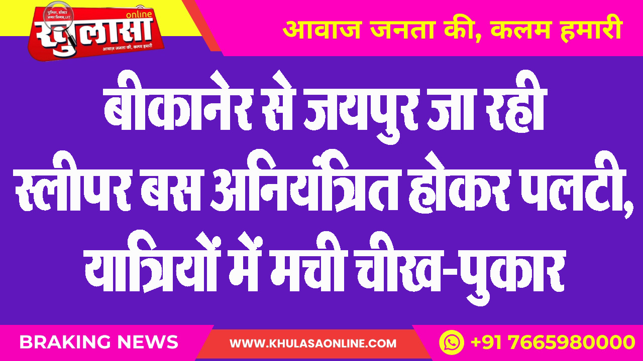 बीकानेर से जयपुर जा रही स्लीपर बस अनियंत्रित होकर पलटी, यात्रियों में मची चीख-पुकार