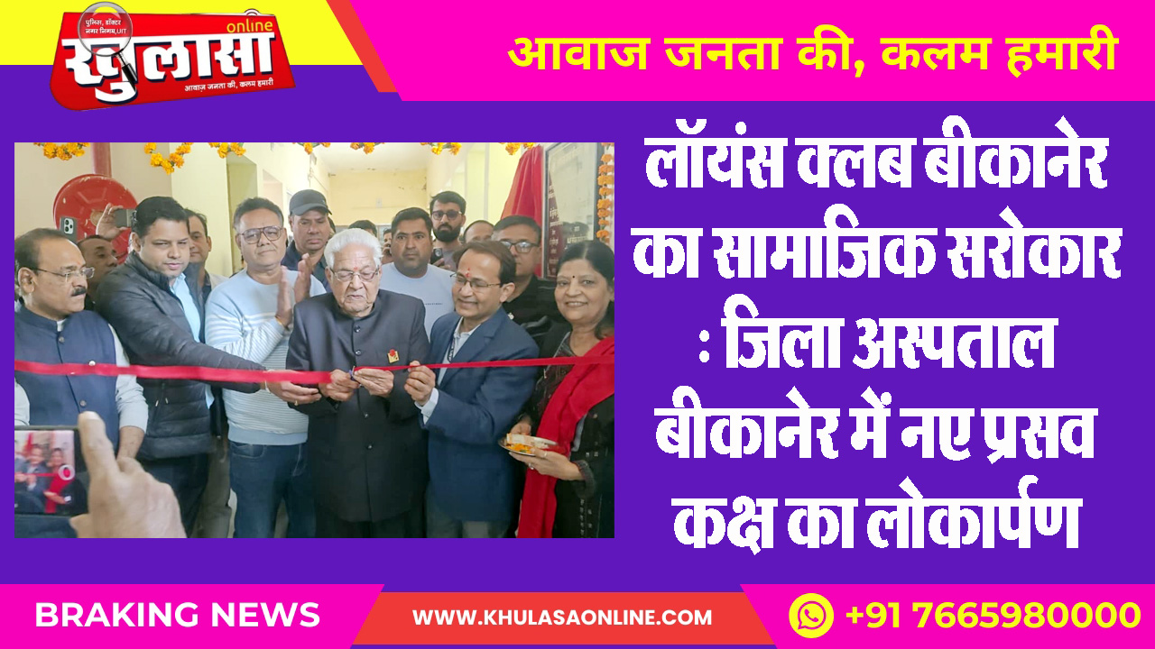 लॉयंस क्लब बीकानेर का सामाजिक सरोकार : जिला अस्पताल बीकानेर में नए प्रसव कक्ष का लोकार्पण