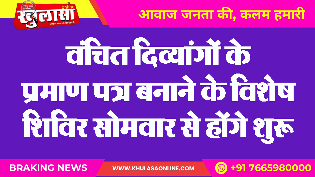 वंचित दिव्यांगों के प्रमाण पत्र बनाने के विशेष शिविर सोमवार से होंगे शुरू