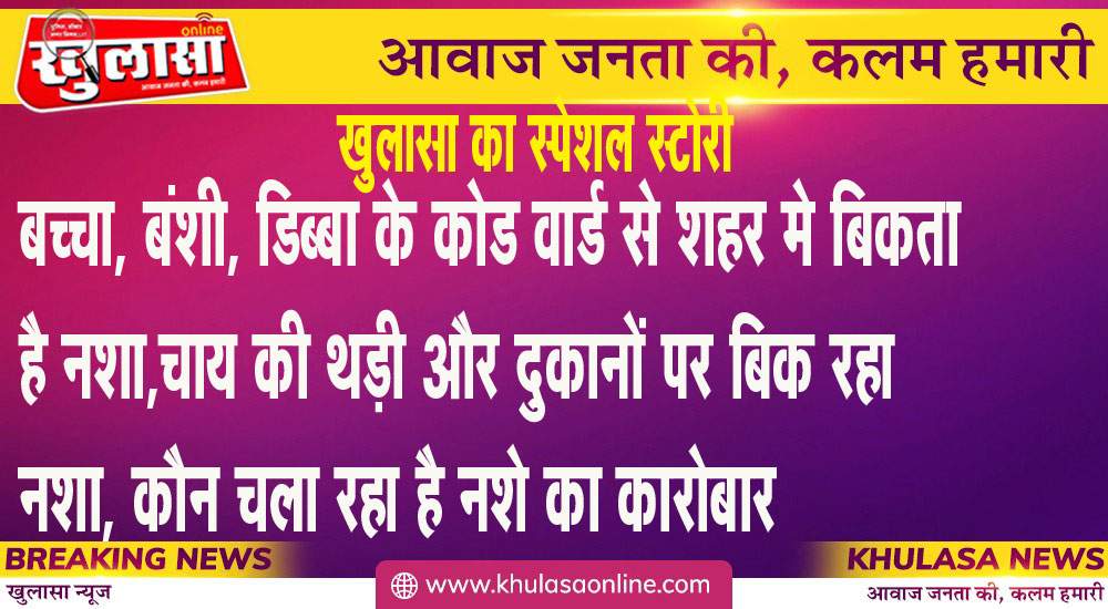 खुलासा का स्पेशल स्टोरी बच्चा, बंशी, डिब्बा के कोड वार्ड से शहर मे बिकता है नशा,चाय की थड़ी और दुकानों पर बिक रहा नशा, कौन चला रहा है नशे का कारोबार