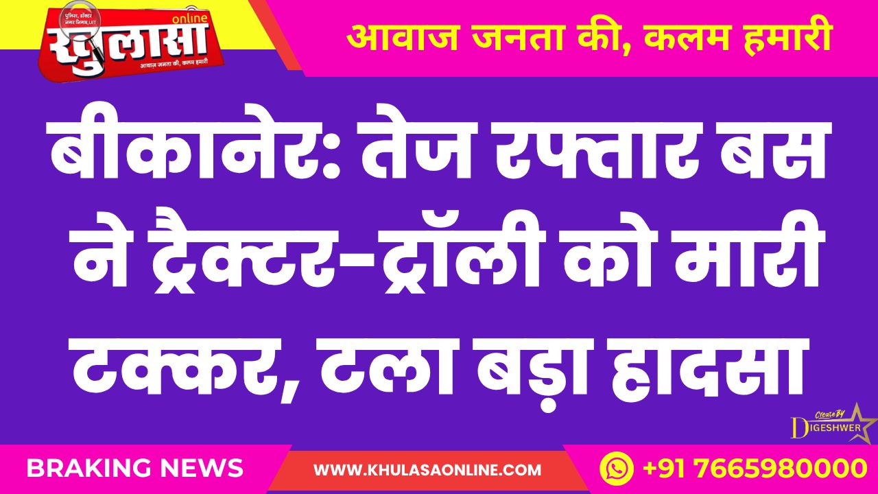 बीकानेर: तेज रफ्तार बस ने ट्रैक्टर-ट्रॉली को मारी टक्कर, टला बड़ा हादसा