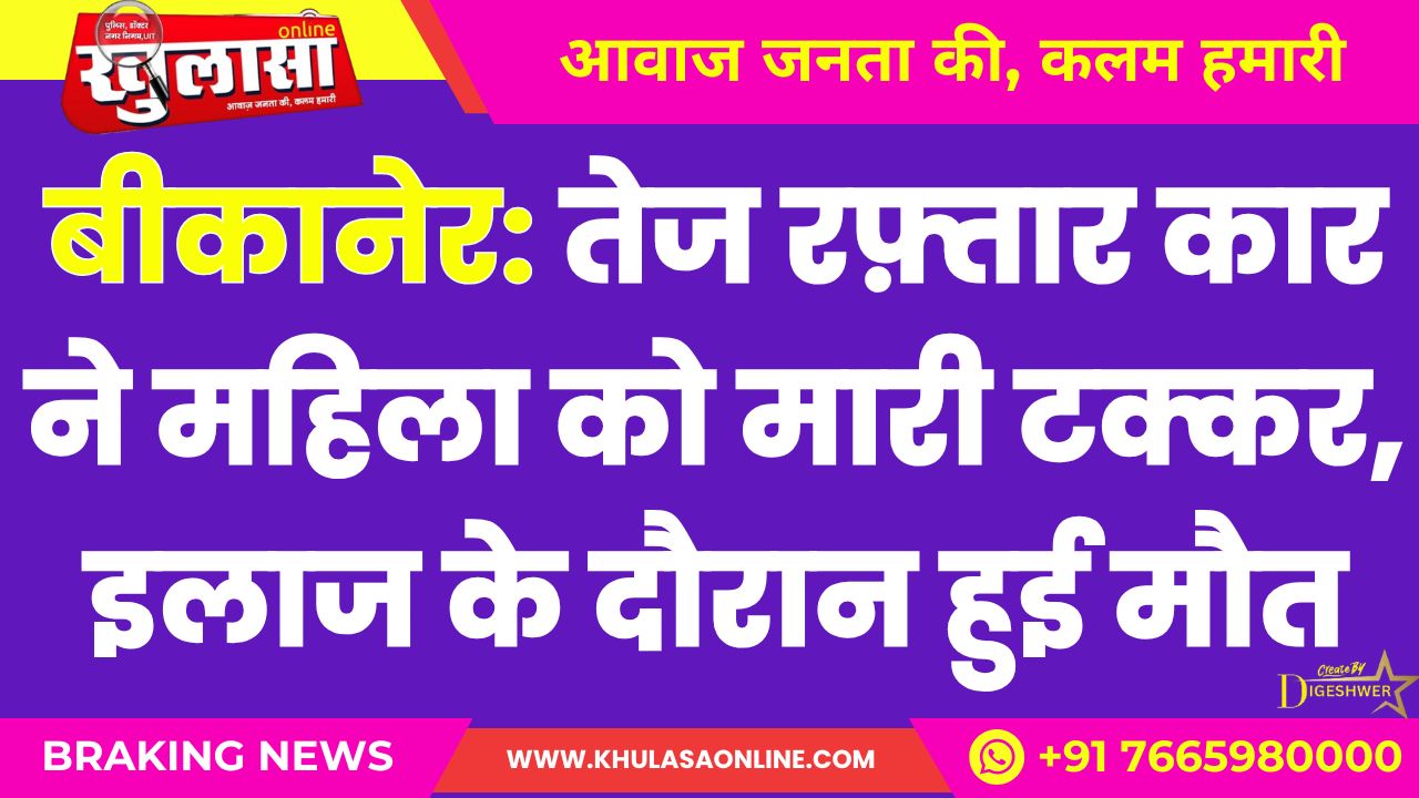 बीकानेर: तेज रफ़्तार कार ने महिला को मारी टक्कर, इलाज के दौरान हुई मौत