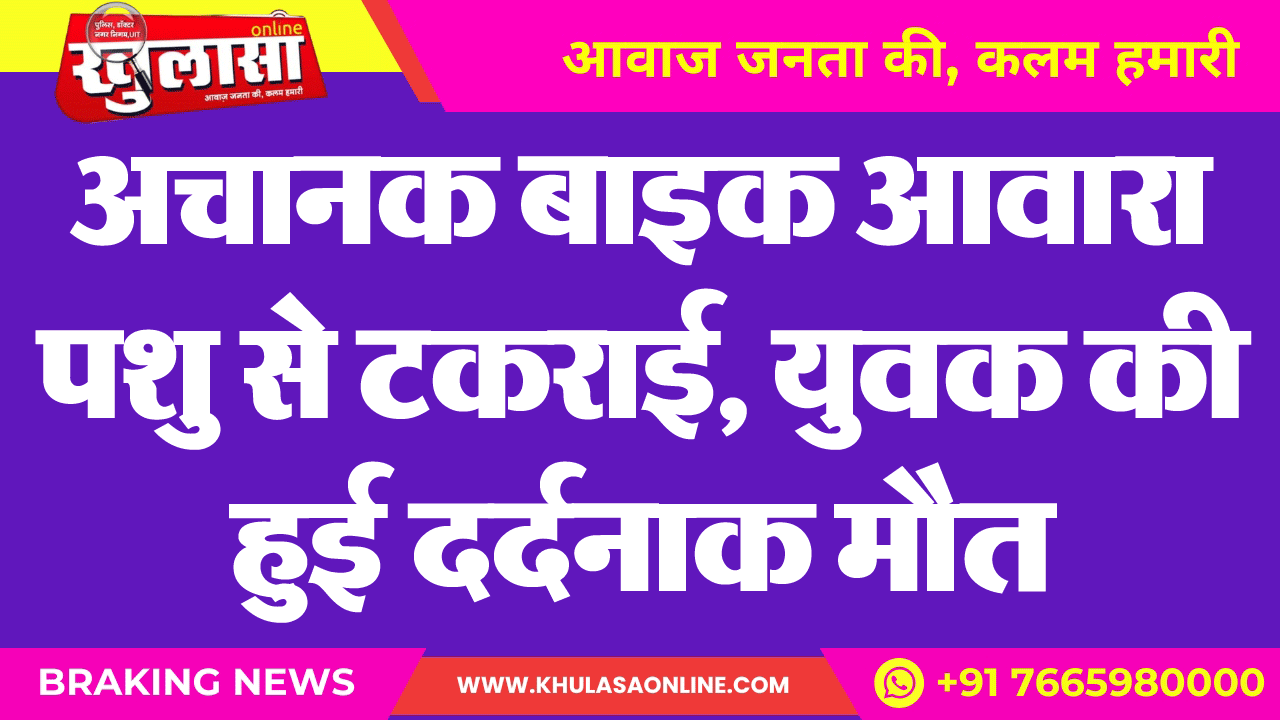 अचानक बाइक आवारा पशु से टकराई, युवक की हुई दर्दनाक मौत