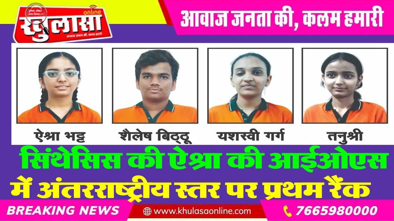 ऐश्रा के अलावा कक्षा 12 वीं से शैलेष बिठ्ठू ने अंतर्राष्ट्रीय रैंक 158 व जोनल रैंक 56, कक्षा 11 वीं से यशस्वी गर्ग ने अंतर्राष्ट्रीय रैंक 204 व जोनल रैंक 70, तनुश्री ने अंतर्राष्ट्रीय रैंक 205 व जोनल रैंक 71, कक्षा 12वीं के दिवाकर पुरोहित ने अंतर्राष्ट्रीय रैंक 293 व जोनल रैंक 79, आयुष मित्तल ने अंतर्राष्ट्रीय रैंक 294 व जोनल रैंक 80, कक्षा 12वीं से श्रीगोस्वामी ने जोनल रैंक 90 प्राप्त की है। संस्थान से 27 विद्यार्थी द्वितीय लेवल के लिए चयनित हुए है और 18 विद्यार्थियों ने मैडल प्राप्त किए है। चयनित हुए विधार्थियों ने बताया कि सिंथेसिस की प्रीफाऊन्डेशन और फाऊन्डेशन टीम की मेहनत, सिंथेसिस के स्टडी मेटेरियल व ओलम्पियाड आधारित विशिष्ट टैस्ट सीरीज के कारण उन्हें यह सफलता प्राप्त हुई है। इस अवसर पर सिंथेसिस डायरेक्टर्स व गुरुजनों ने विधार्थियो को विशिष्ट उपलब्धि पर हार्दिक शुभकामनाएं और उज्जवल भविष्य के लिए आशीर्वाद दिया।